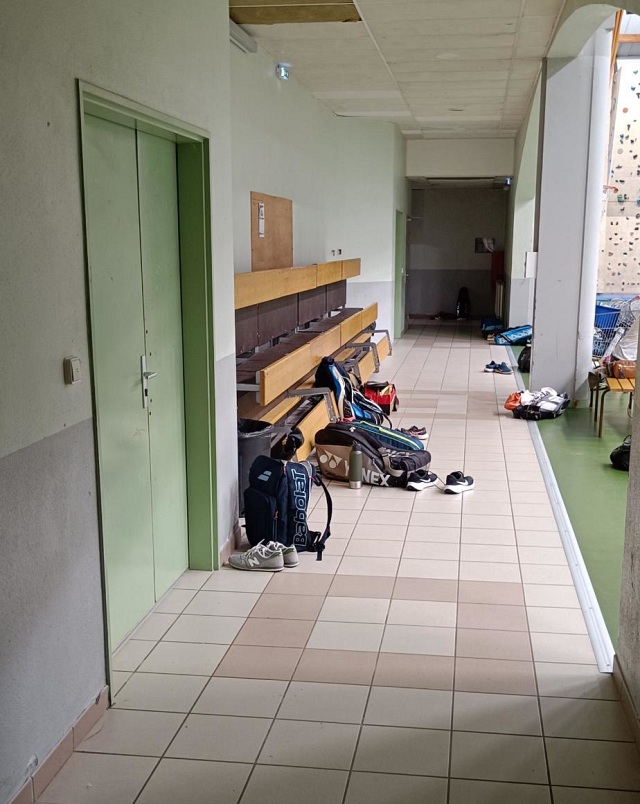 Les vestiaires sont au fond du couloir (à gauche pour les dames et à droite pour les messieurs).